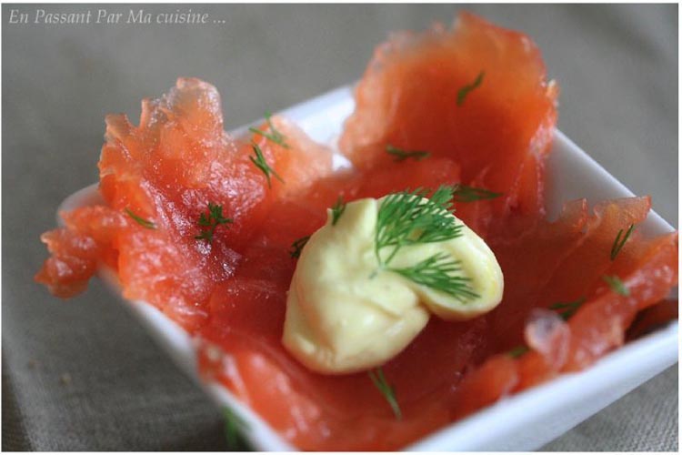 | Saumon à la moutarde de Beaune, Vin Jaune et fondue d’endives | 10€90 pièce |